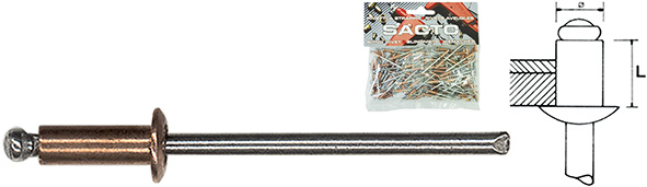 In confezione BLISTER. Rivetti in rame con chiodo in acciaio, testa bombata.